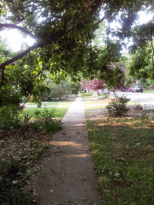 The house we rented was on a street lined with trees. The sidewalk.